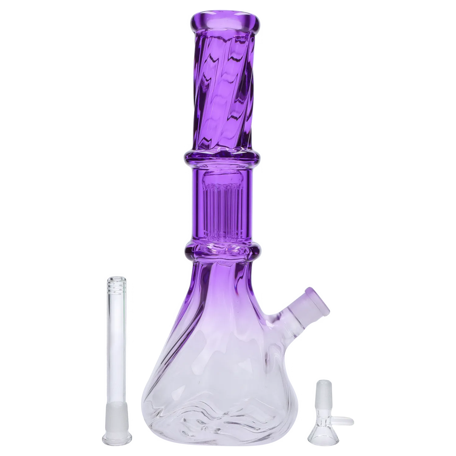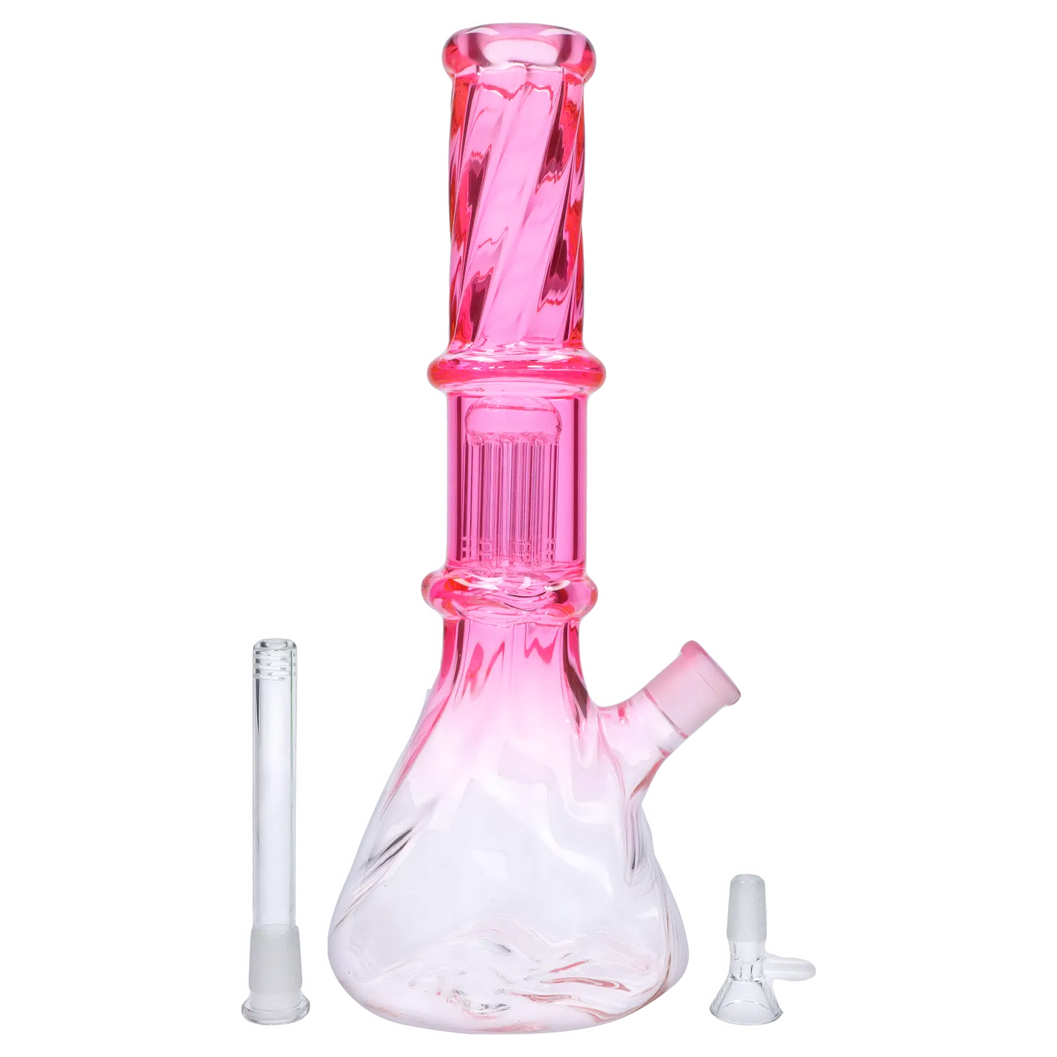 The Twisted Neon Beaker w/ Tree Perc is a top-tier borosilicate glass water pipe boasting an expertly crafted beaker base and a precision-engineered tree percolator, synergistically designed to optimize smoke diffusion and yield an exceptionally smooth inhalation experience.