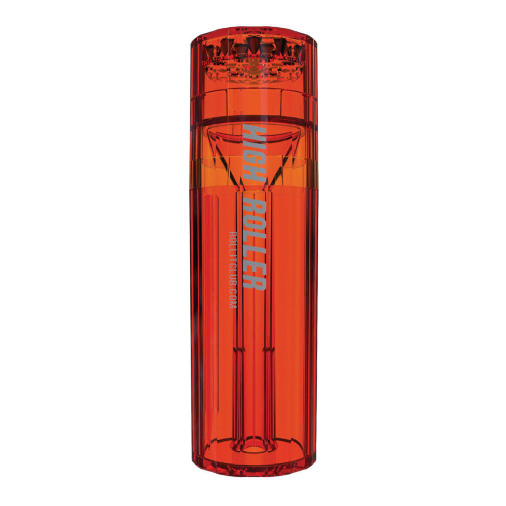 The Highroller Grinder and Fastpack Cone Filler is available in the following colors: clear, green, red, and smoke. Select the color of your preference in the drop-down menu when you place your order at grasscity.com